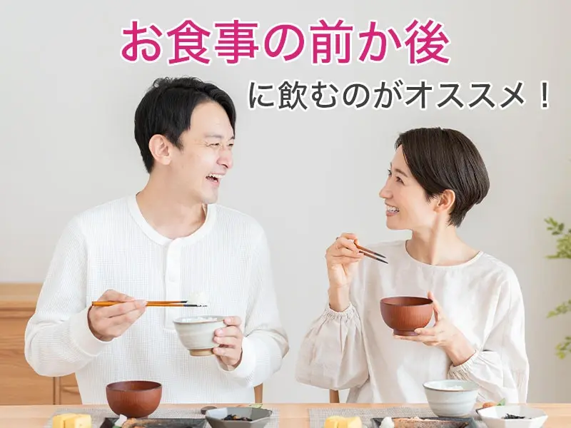 飲み忘れがないお食事の前か後に飲むのがオススメ!